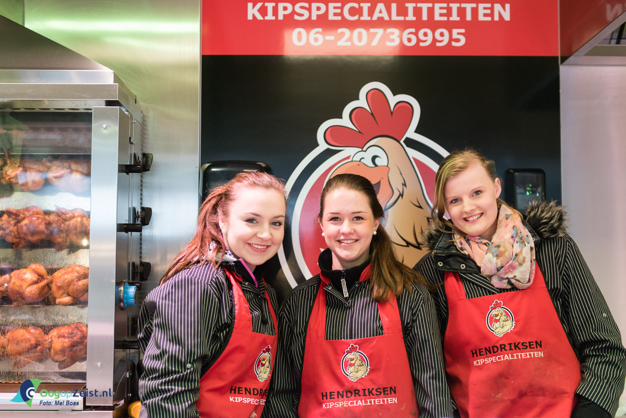 De hulpvaardige dames zijn helemaal in hun nopjes met de nieuwe kar van Hendriksen Kipspecialiteiten. Kim, Danique en Rienke vinden dit fijn werken. Niet meer op de koude grond. “Zo kunnen we de klanten goed helpen”.