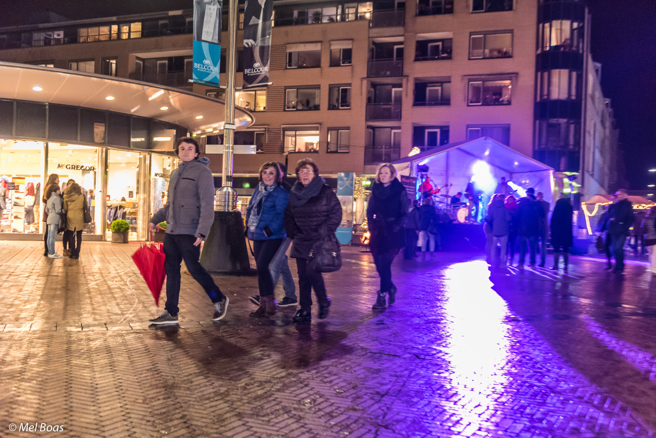 De vierde moonlightshopping bracht een gezellige drukte in het centrum van Zeist. Waar tijdens eerdere edities het vooral druk was rond de podia van de bandjes. Overal werd er genoten van gluhwein of warme chocolade melk. Soms aangevuld met een oliebol of andere winterse lekkernij zoals gifgroene CDA Snert. Bij dit gure weer gaat alles wat een beetje warmte geeft er lekker in.