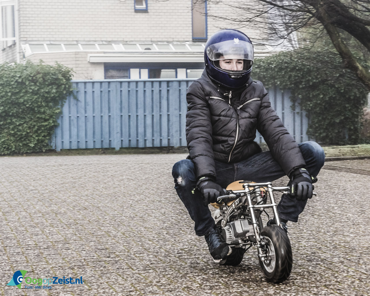 Rodie en Thomas hebben samen een kleine motor. Hiermee scheuren ze rond. Hun circuit is het parkeerterrein op de Godfried van Seistlaan. Daar rondjes rijden en is best leuk. Het lijkt ze ook leuk om eens aan een echte wedstrijd op een circuit mee te doen. Wie weet komt het er nog eens van. Deze snelheidsduivels kunnen hun race kwaliteiten meten met andere snelle jongens op een mini motor.