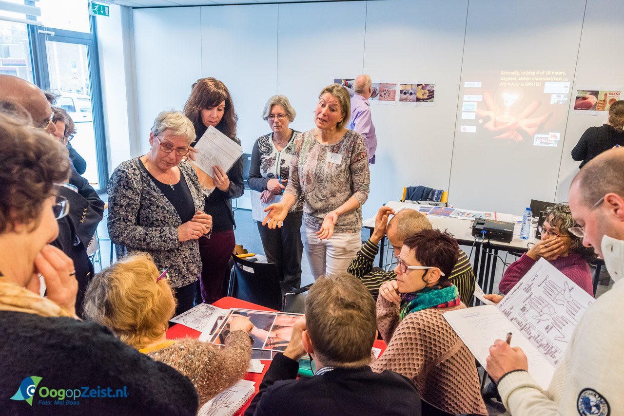 In de beide helften van de zaal wordt een workshop gegeven
