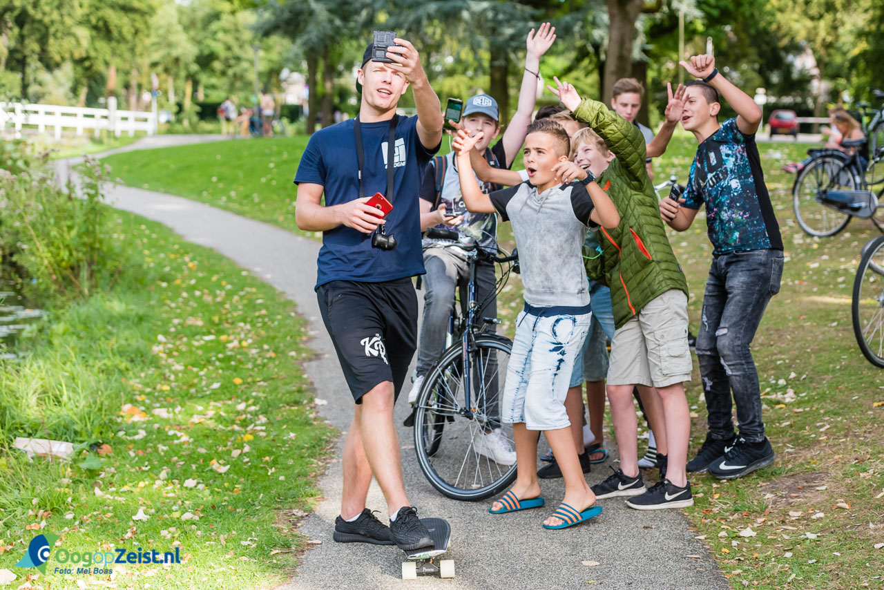 Zondagmiddag werd de vaste clan van Pokemon Go spelers op de rand van de vijver verast door een bezoekje van Nederlands bekendste vlogger Enzo Knol. Enzo was even achter zijn beeldscherm vandaag geklommen om een beetje van de vierkante ogen af te komen en zijn hond Bumper uit te laten. Als snel was hij verwikkeld in een gesprek over poliwigs en andere pokemon’s , die bij Pokemon stop Slot Zeist gevangen kunnen worden.