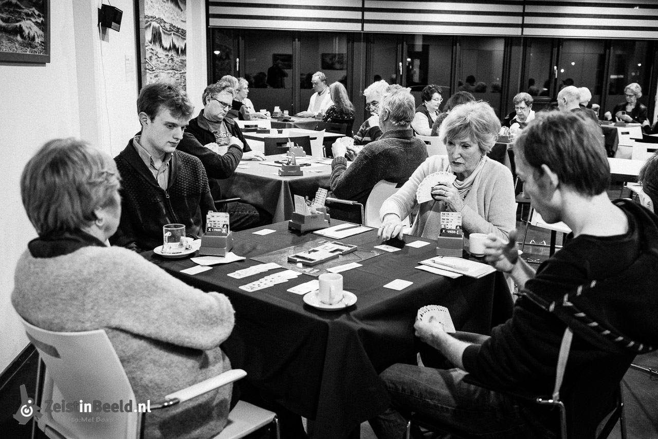 Een maandagavond zoals ieder ander b bij de bridgeclub Het Witte Huis (HWH) te Zeist. Maandagavond is de vaste speelavond van de 72 actieve leden van de oudste bridgeclub van Zeist. Het Witte Huis is een van de 5 bij de Nederlandse Bridgebond aangesloten bridgeclubs die Zeist rijk is. Drie van de vijf clubs hebben de Koppeling in de Clomp als vaste speel locatie.