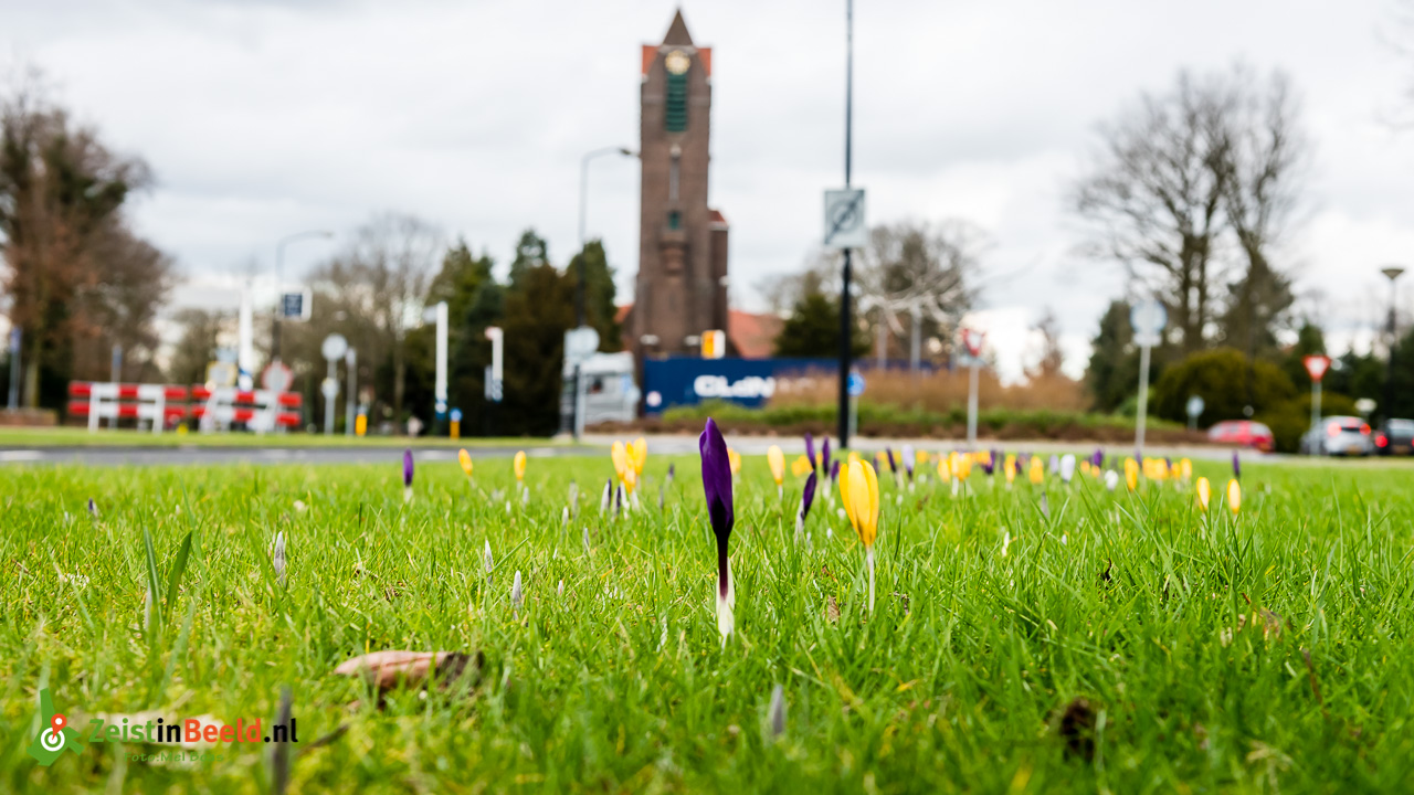 Van de start van de lente merken we in deze krokusvakantie nog niet heel erg veel. Het weer is vooral grijs en sombert met soms een enkel zonnestraaltje.  Her en der  steken de eerste krokussen de kopjes door het grasveld heen en brengen enig kleur terug in het grijze weer.
