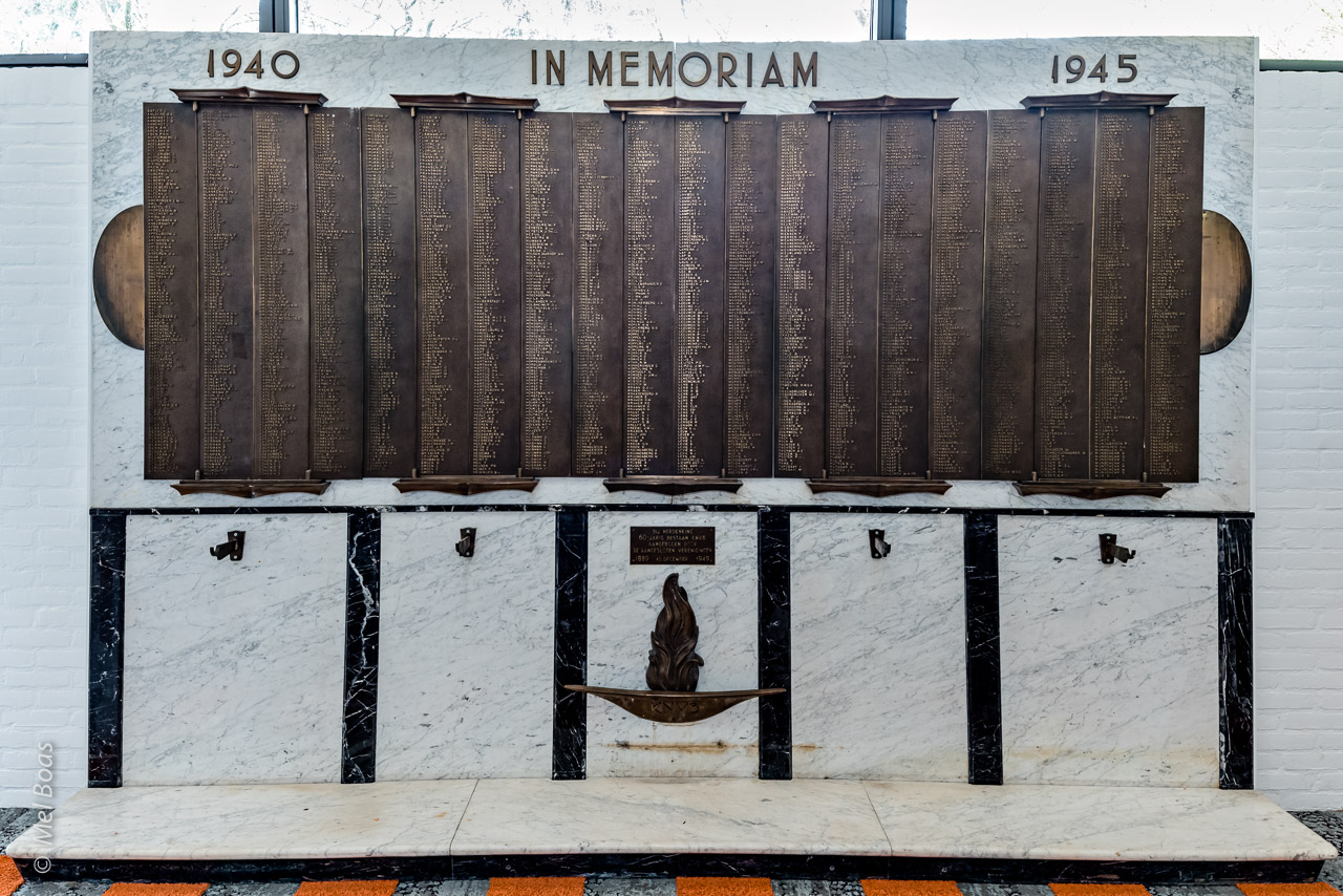 De tekst boven de kasten luidt: ‘1940 – IN MEMORIAM – 1945’