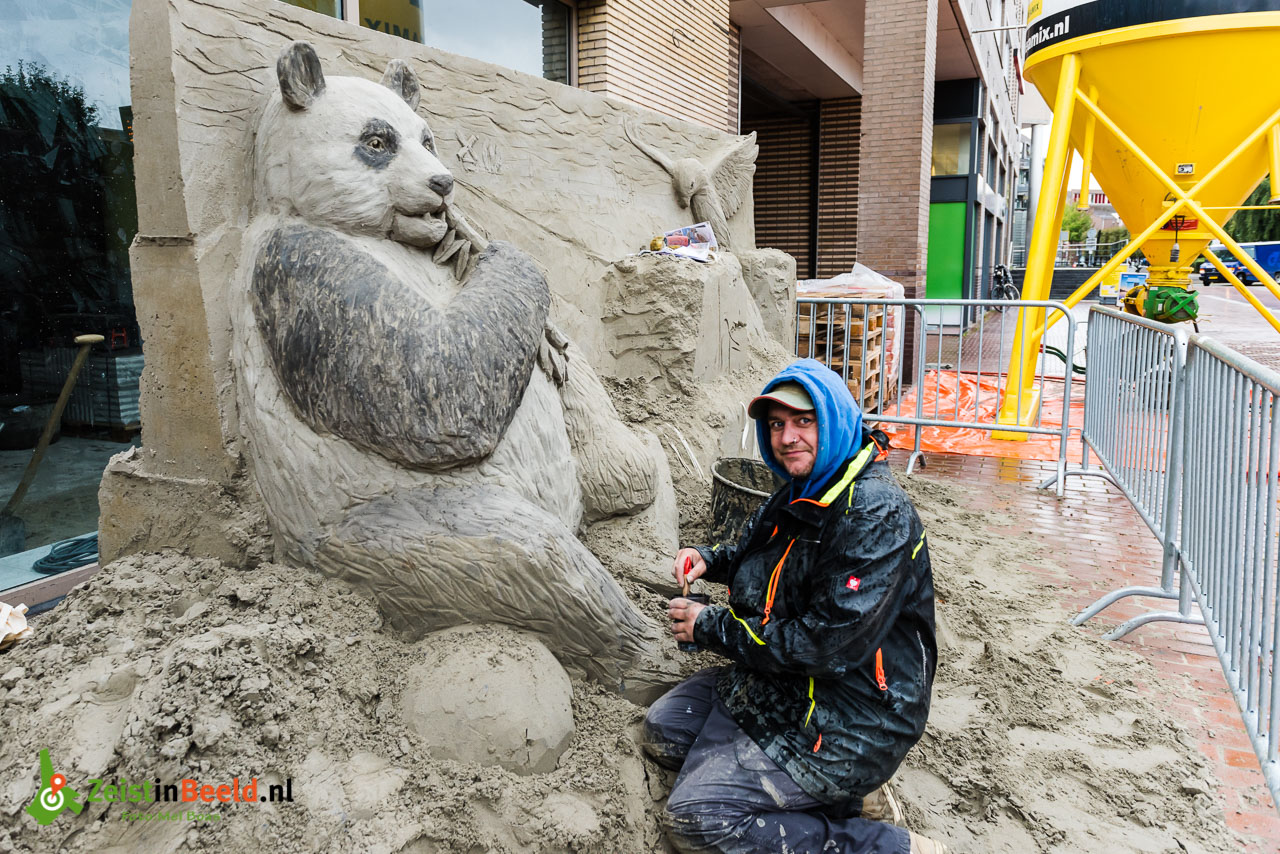 Veel ondernemers vonden het een grappig idee om iets te doen met al dat zand in het centrum tijdens de verbouwing. Er wordt ook door bouwonderneming BAM enorm met zand geschoven in het centrum. Voor het zandsculptuur is ongeveer 13 ton aan zand gebruikt. Als het kunstwerk klaar is komt er een lijnlaag overheen, die moet het beschermen voor een normale regenbui. Vrijdag moet het project klaar zijn.