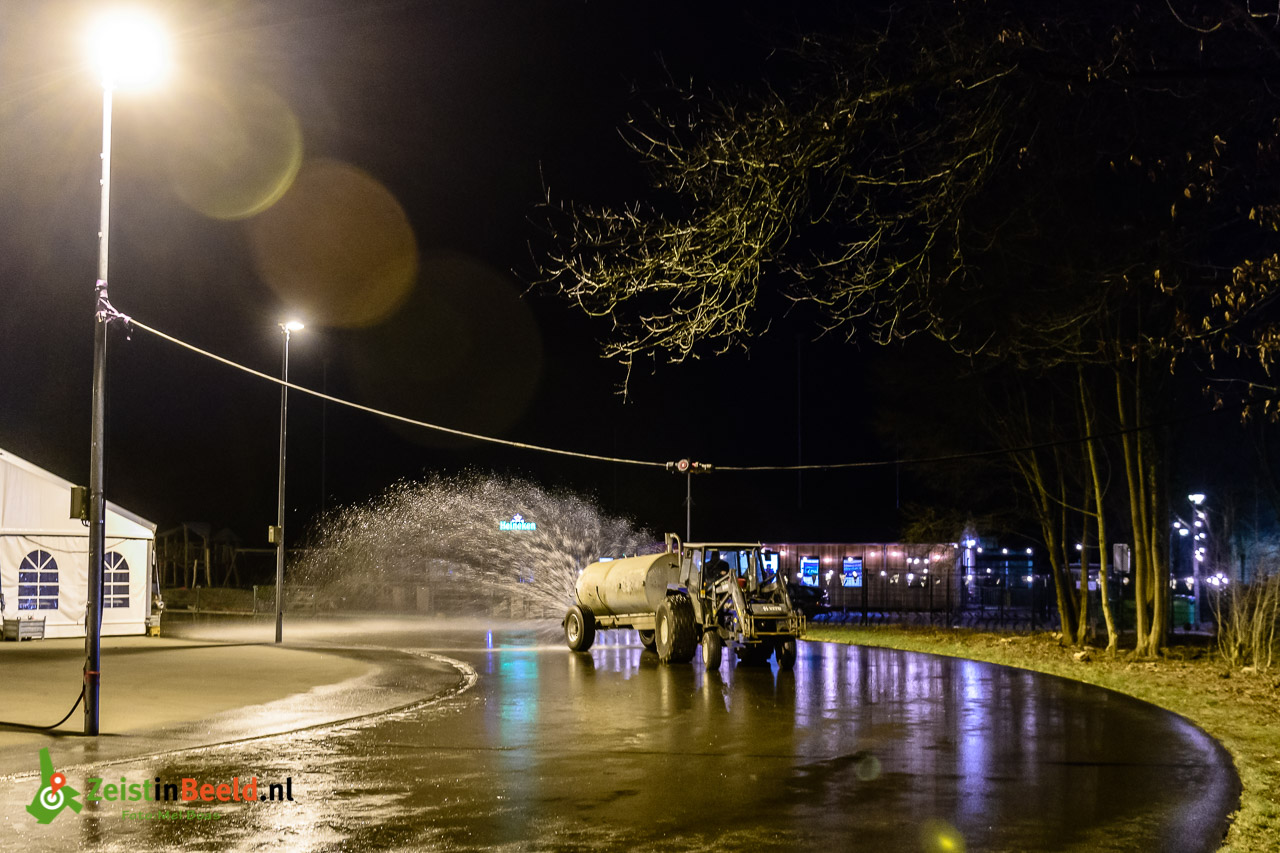 Later vannacht daalt de temperatuur in Zeist tot min 7 graden. Vanaf 5 uur gaan de vrijwilligers door met het aanbrengen van extra ijslagen door de baan te besproeien. Vanaf 10:00 gaat de ijsbaan open en kan geschaatst worden op de ijsbaan Blikkenburg.