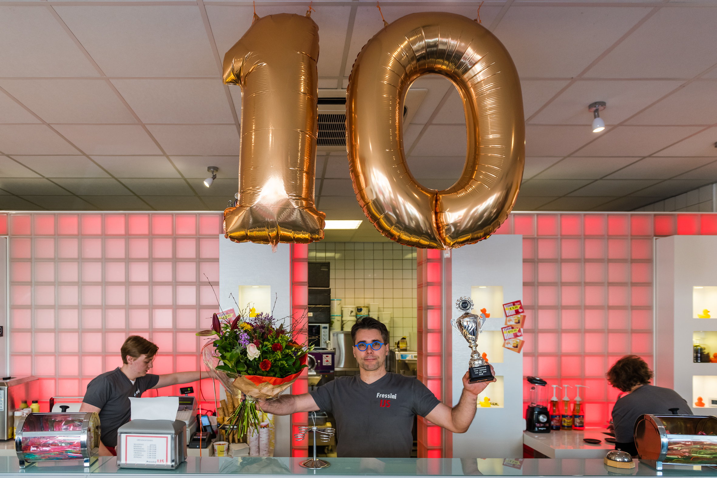 Peter en Suzan Brouwer vierden afgelopen zaterdagmiddag wel een feestje. Fressini opende 10 jaar geleden voor het eerst zijn deuren aan de Steynlaan. Inmiddels is deze ijssalon met een dependance aan de Slotlaan een begrip geworden in Zeist en ver daarbuiten.