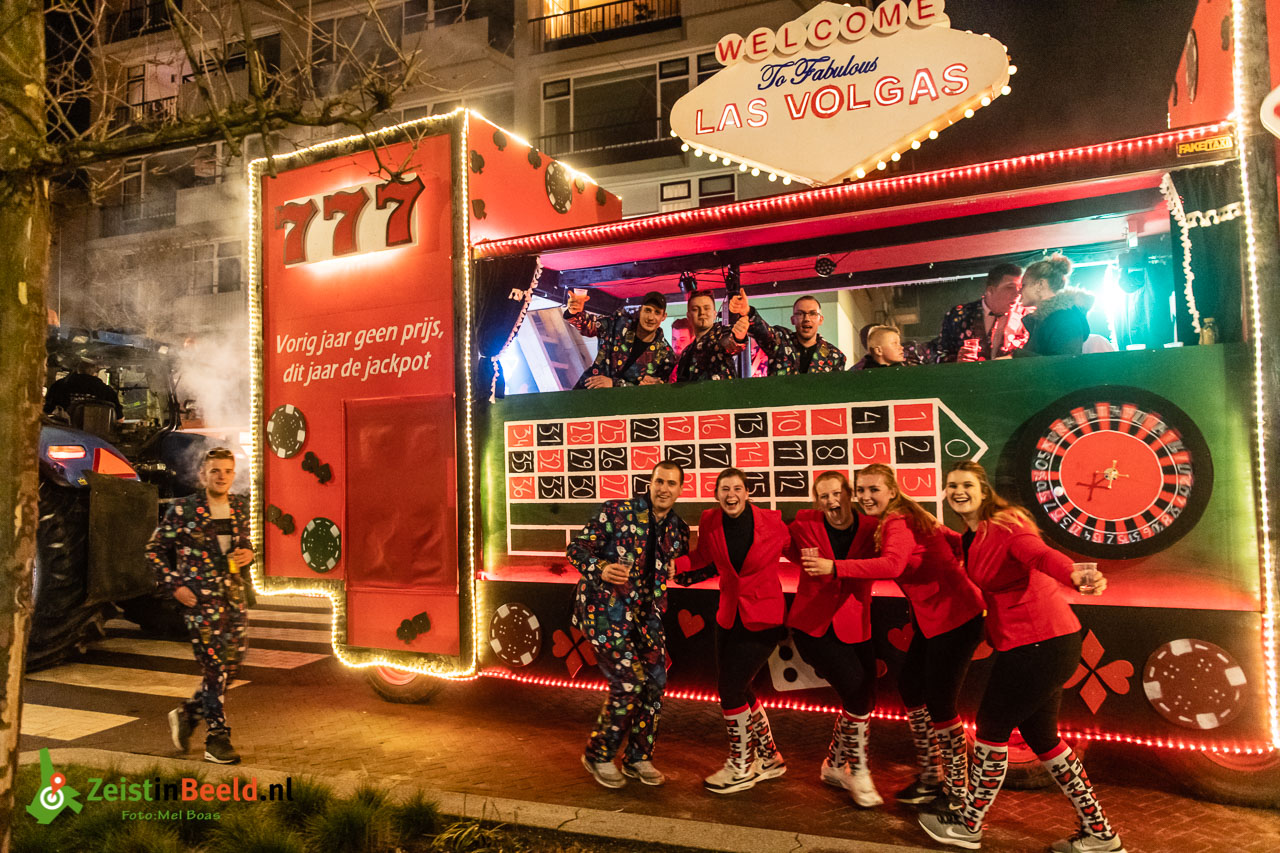 In de verschillende categorieën waren er prijzen te winnen voor de fraaist uitgedoste carnavalsvierders. Winnaar van de lichtjesoptocht wisseltrofee werden The Pirates uit Harmelen in hun Zuipschuit.